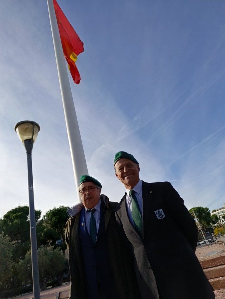 El acto fue presidido por el General de División D. Joaquín Broch Hueso, Director de Acuartelamiento (DIACU) del Ejército de Tierra. El piquete de honores estuvo compuesto por una Sección y la Unidad de Música del Regimiento de Infantería “INMEMORIAL” Nº 1. Además de los socios de la Asociación Española de Soldados Veteranos de Montaña, asistieron al acto miembros de la Real Hermandad de Veteranos de las FAS y Guardia Civil, de la Hermandad de Caballeros Legionarios y de la Hermandad de Veteranos del Inmemorial el Rey. Tras los honores a la autoridad a su llegada, se procedió al solemne izado de la Bandera. En una fría y soleada mañana del mes de noviembre, y rodeados de un mercado navideño, los acordes de la Marcha Real acompañaron a la Bandera en su ascensión a los cielos de Madrid.