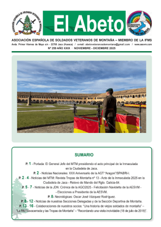 Ya se encuentra disponible en esta web, en el apartado PUBLICACIONES/EL ABETO, en formato digital, el ejemplar de la Revista ABETO nº 259 correspondiente a los meses de Noviembre-Diciembre de 2025.