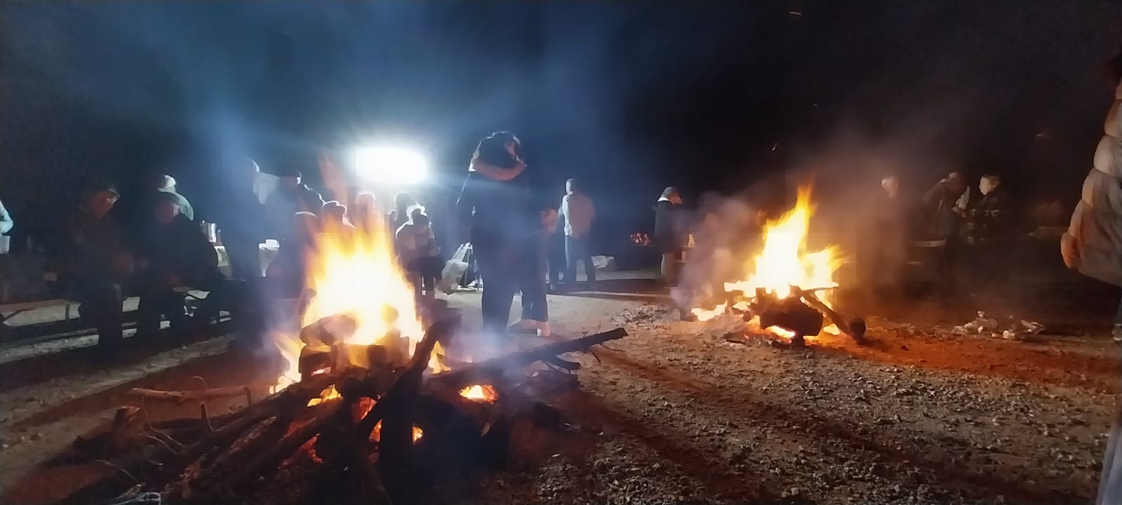En un ambiente de camaradería, e impabidos al frío y al agua nieve, junto a la hoguera se degustó panceta, longaniza, chorizo, morcilla regados de buenos tintos. Todo gracias al esfuerzo de un grupo de socios que prepararon la leña, las brasas, y toda la logística necesaria, bajo la dirección de Fina Monleón.