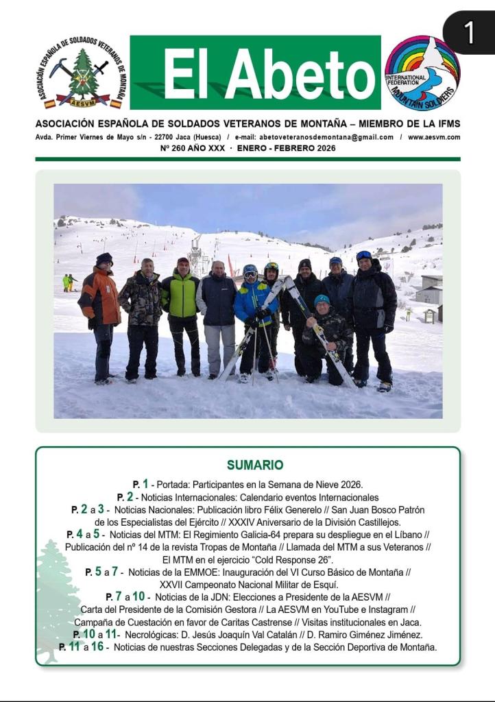 Ya se encuentra disponible en esta web, en el apartado PUBLICACIONES/EL ABETO, en formato digital, el ejemplar de la Revista ABETO nº 260 correspondiente a los meses de Enero-Febrero de 2026.