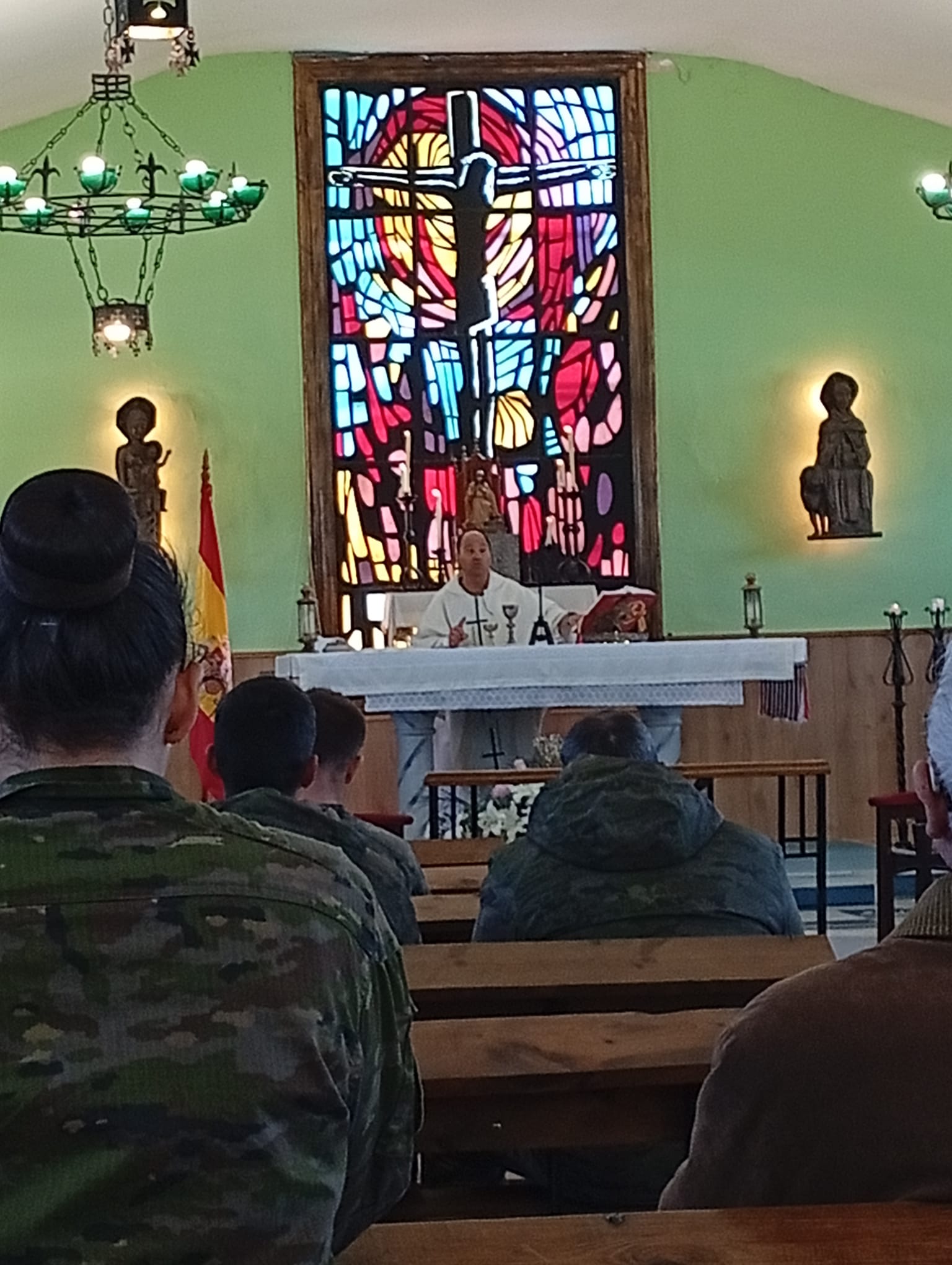Espiritualidad y Hermandad: Tras la proyección de dos vídeos operativos que mostraron la dureza y tecnificación de los cursos actuales, el Pater Castrense D. Alfonso Gatón ofició la Santa Misa en la capilla de Nuestra Señora de las Nieves, actual patrona de los Soldados Veteranos de Montaña.