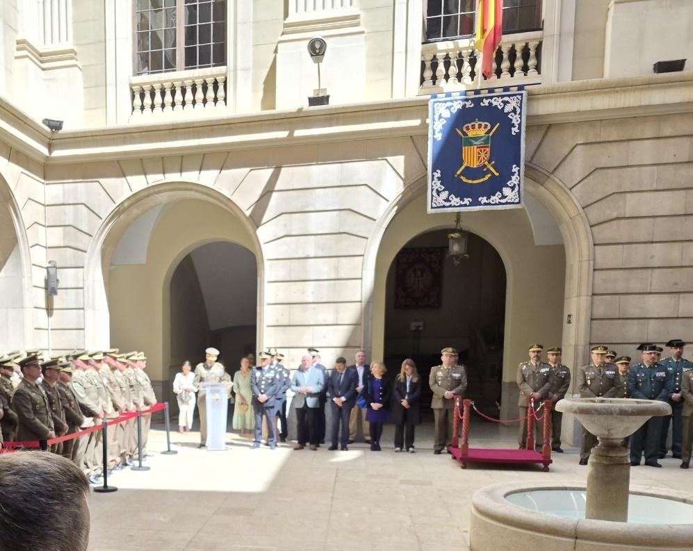 El acto se desarrolló en el Patio de Armas del Acuartelamiento. Una vez formada laUnidad y la Banda, se dio entrada a la Bandera de España a los sones del Himno Nacional, que se escuchó con el máximo respeto por todos los asistentes. Cuando la bandera se colocó en su sitio en la formación, hizo su entrada el General de Cea. Tras serle presentadas las novedades, pasó revista a la formación donde también formamos las diferentes Asociaciones de Veteranos.